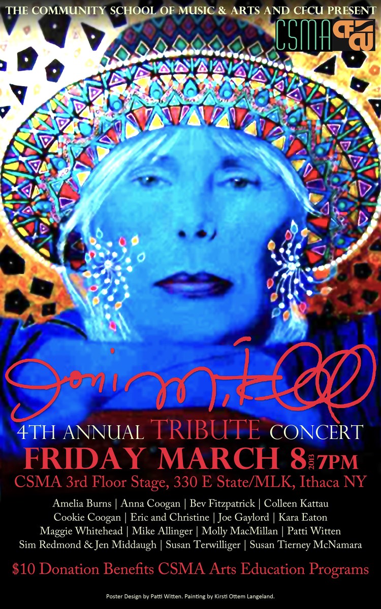 joni tribute poster 2013 Published February 17, 2013 at 1500 × 2400 in Poster: 4th Annual Joni Mitchell Tribute Concert 2013 Joni Mitchell Trubute concert poster. Painting by Kirsti Ottem Langeford.